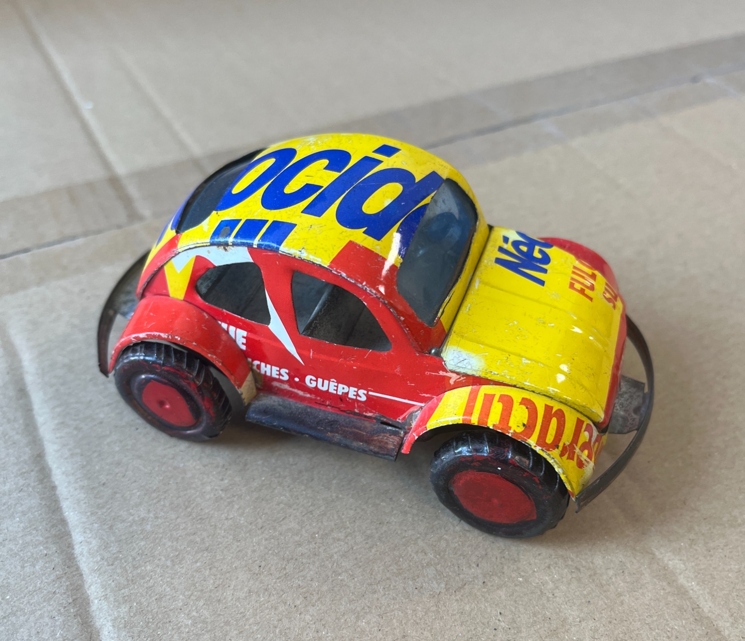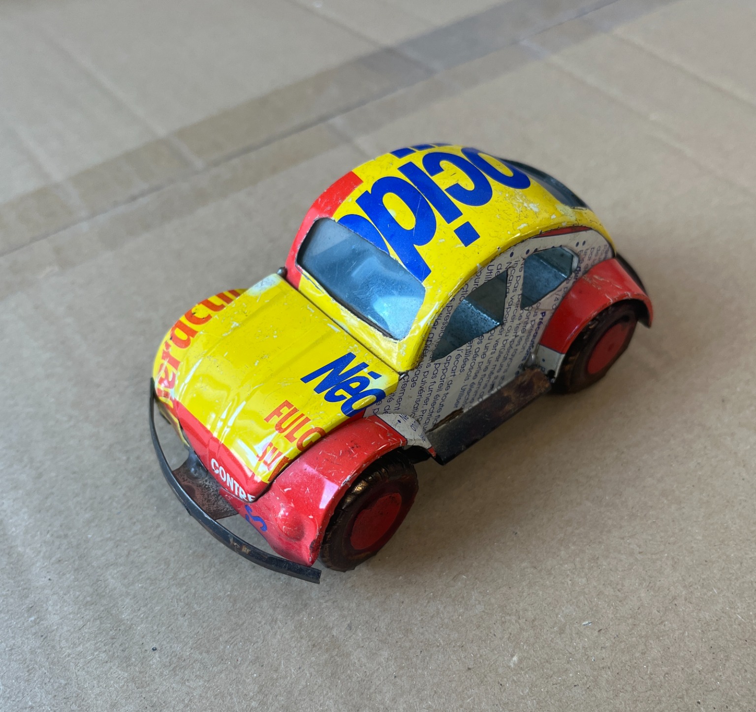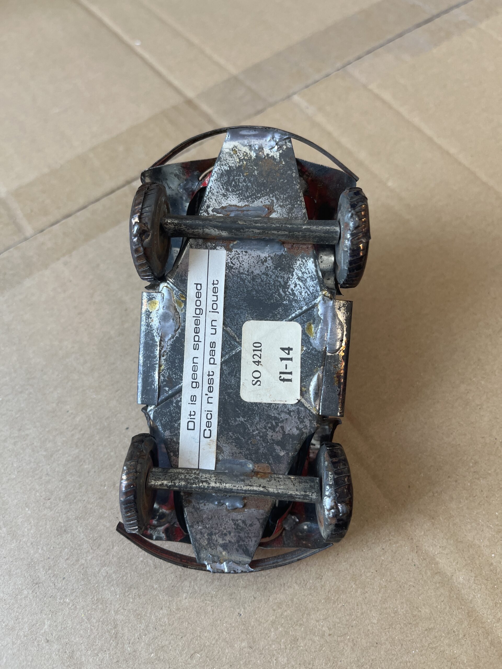 Handgemaakte blikken auto. Een uniek decoratief item, ideaal voor verzamelaars of als eyecatcher in huis.